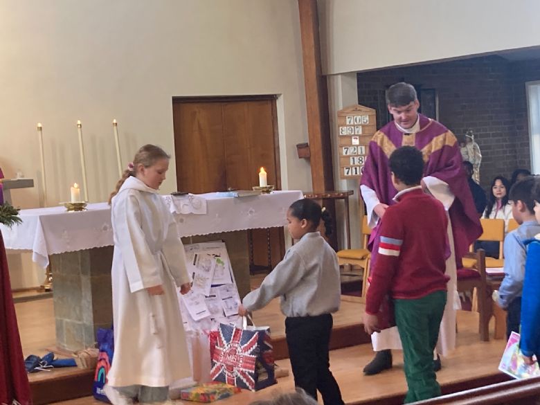 During Advent, the pupils making their Sacraments of First Holy Communion and Confirmation this academic year, took part in the Giving Mass at St Thomas More Church. Our pupils led the readings and bidding prayers and lit the first Advent Candle. Along with the parish community, children brought a small toy or gift suitable for a child aged 4-11 years to the Mass. These gifts will be distributed amongst the more vulnerable in our community. Having the opportunity to see themselves as active members of the parish and local community is an important part of our pupils' Sacramental preparation. By giving to others, they are learning to put their faith into action and show solidarity and how simple actions can make a positive difference.