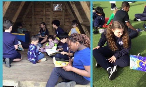 We had a fun-filled World Book Day! This morning we joined a live Booky and Footy quiz with schools across England, and this afternoon we visited the nursery to read stories together in the sunshine. 📚☀️