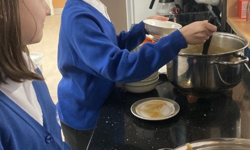 Year 6 pupils spent a rewarding lunchtime volunteering at the church hall soup kitchen in support of CAFOD. They helped lay tables and served homemade soup to parishioners and Father Damian, who praised their kindness and excellent manners.
