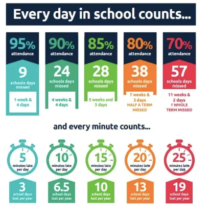 Punctuality is just as important as daily attendance. Even small amounts of lost time can have a significant impact on learning.